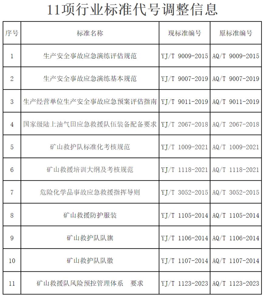 应急管理部关于调整11项安全生产行业标准代号的公告