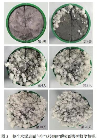 效果:眼见为实的“愈合”证据快速愈合: 在自然空气条件下,预制宽度0.46毫米的裂隙,4天内即被白色修复物基本覆盖,7天内裂隙完全消失。持续修复: 实验中将已生成的修复物刮掉,裂隙处3天内仍有新修复物生成,展现出持续修复潜力。微观佐证:SEM电镜: 自修复水泥内部存在大量多孔状结构(利于吸附),其水化产物元素(C, Na, Al, Si)含量显著高于普通水泥。